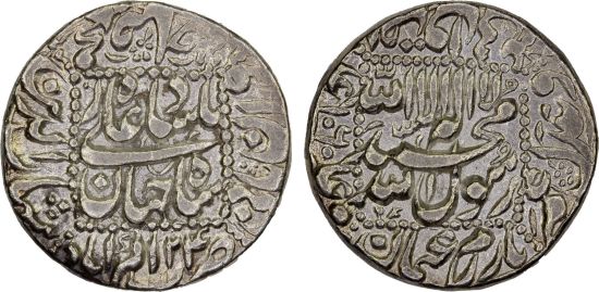 This specimen was lot 2604 in Steve Album Auction 51 (Santa Rosa, CA, January 2025), where it sold for $102. The catalog description[1] noted, "MUGHAL: Shah Jahan I, 1628-1658, AR rupee, Akbarabad, AH1060 year 24, without any testmarks, XF." Shah Jahan is most remembered today for having built the Taj Mahal as a mausoleum for his wife. His successors after Aurangzeb (r. 1658-1707) were not able to cope with external attack, Hindu rebellion and civil war and the empire broke up in the eighteenth century. Akbarabad struck this style years 4-30. The type 235 is probably the most common of Shah Jahan's rupees, being struck at three dozen mints.