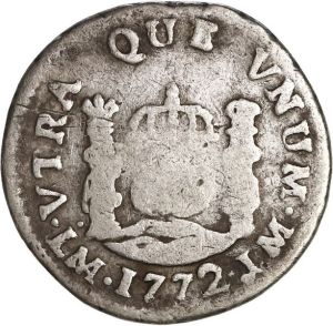 This specimen was lot 2113 in Sedwick Auction 37 (Winter Park, FL, May 2025), where it did not sell. The catalog description[1] noted, "PERU, Lima, pillar ½ real, Charles III, 1772 JM, very rare, ex-O'Brien. Very rare date and final year of issue for the type; though cataloged by Yonaka as R4 and only one observed, we found at least two others sold in the past thirteen years. VG with a few scratches, irregular edges (as made). Pedigreed to the John O'Brien Collection, with his tag." This type was struck for Charles III 1760-72. It is not rare but many of the dates are very scarce compared to their Mexican equivalents.