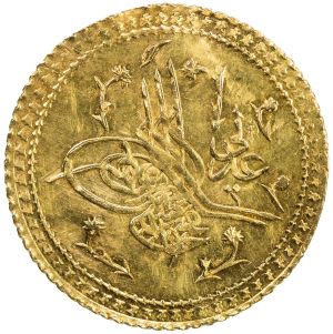 This specimen was lot 2354 in Stephen Album sale 37 (Santa Rosa, CA, June 2020), where it sold for $154.70. The catalog description[1] noted, "TURKEY: Mahmud II, 1808-1839, AV sûrre altin al-aliye, Darulhalife, AH1223 year 15, uneven surfaces, lustrous, EF to AU, ex Ahmed Sultan Collection." This type was issued years 15-16 (1821-22). This denomination and the similar esseniye surre altin (KM 625) were struck especially for pilgrims going to Mecca. They are now rare. The gold was the victim of frequent manipulation and the denominations changed names in a confusing manner. The SCWC lists zeri mahbubs, rumi altins, adli altins, yeni altins and hayriye altins for this period. Matters were regularized in the reign of Abdul Mejid, with gold coins issued in multiples of the kuruş.