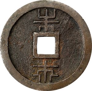 The first specimen was lot 1436 in Stephen Album sale 38 (Santa Rosa, CA, September 2020), where it sold for $505.75. The catalog description[1] noted, "JAPAN: RYUKYUS: Sho Tai, 1848-1879, AE 125 mon, Isinohama mint, han shu on reverse, seal script, cast 1862-65, EF, ex Dr. Axel Wahlstedt Collection. The half shu denomination was a round coin with a square hole introduced alongside the oblong 100 mon by Satsuma, which ordered it to circulate at the value of 248 mon despite it weighing only 10 to 12 times the weight of a single mon coin. The word shu is a Japanese unit of measurement used with gold currency, indicating that the Satsuma government was trying to fix the exchange rate between the copper mon coins and gold currency such as the Koban. Officially, one half shu would mean 32 coins would have the value of one ryo, though this conversion rate seems unlikely to have occurred in practice. The production of these coins was set up by Daimyo Shimazu Nariakira in order to rebuild Satsuma's economy; in total, around one million ryo worth of Ryukyuan coins were minted from 1862 to 1865." The second specimen was lot 74083 in Stack's Bowers Collector's Choice sale (Costa Mesa, CA, February 2023), where it sold for $168. The catalog description[2] noted, "JAPAN. Ryukyu Islands. Okinawa. 1/2 Shu, ND (1863). Grade: CHOICE VERY FINE. This handsome and nicely preserved example displays lovely rich brown patina with plenty of naturally rough surface texture in the open fields. One small chopmark is noticed on the edge, presumably applied during the manufacturing process, mentioned for accuracy."