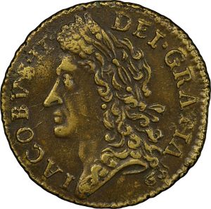 This specimen was lot 75373 in Stack's Bowers Collectors Choice Online Auction (Costa Mesa, CA, May 2025), where it sold for $145. The catalog description[1] noted, "IRELAND. Gun Money Shilling, 1689 March. Dublin Mint. James II. PCGS EF-45. Large Size. "Mar:" variety. From the Sydney F. Martin Collection." This shilling was struck July 1689 thru April 1690. After James II was deposed as king of Great Britain in the Glorious Revolution of 1688, he fled to France. He landed in Ireland in early 1689 to raise the flag of revolt on behalf of the Catholic population. Lacking bullion to strike conventional coinage, church bells and worn out cannon were melted down to make a series of token coinage in sixpence, shilling, half crown and crown denominations. This coinage is unusual in that it is dated by month and year. Some shillings exist dated March 1690 as New year's Day was then in late March. The "XII" stands for twelve pence, its face value. It was to be redeemed in silver after the revolt was successful but James was defeated and forced to return to France while the Irish suffered devastation and land confiscations. William III allowed the coinage to continue to circulate as pennies, half pennies and farthings.