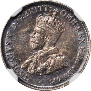 This specimen was lot 70128 in Stack's Bowers Collector's Choice sale (Costa Mesa, CA, October 2021), where it sold for $144. The catalog description[1] noted, "AUSTRALIA. 3 Pence, 1918-M. Melbourne Mint. George V. NGC MS-63. An attractive little coin with good strike, satiny luster, and rich, dark multicolored toning on both sides." This type was struck at the London mint 1911-15 and the Melbourne mint 1916-36 tho not all dates bear mintmarks. This date is fairly common in circulated condition. Australia maintained the sterling silver standard until 1945, years after Great Britain had debased her coins to 0.500 fine.