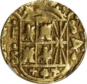 This specimen was lot 2033 in Stack's Bowers NYINC sale (New York, January 2022), where it sold for $5,280. The catalog description[1] noted, "COLOMBIA. Cob 4 Escudos, 1750-FS. Bogota Mint. Ferdinand VI. NGC EF Details--Mount Removed. The only example certified of the date on either the NGC or PCGS population reports. A decently preserved survivor of this VERY RARE date exhibiting boldly struck full cross, shield, denomination and last three digits of the date on a somewhat compact flan. The surfaces display an attractive pale gold tone with brighter coloration on the high points. Close inspection reveals evidence of being removed from jewelry as indicated on the NGC insert. Despite its shortcoming a handsome and presentable example of the type sure to be a welcome addition to the next collection it enters. From the Pat Johnson Collection." This date bears an assayer initial "S", visible above the denomination. This type is listed for 1747-56 with all dates marked as rare. Milled coinage of gold commenced in 1756.