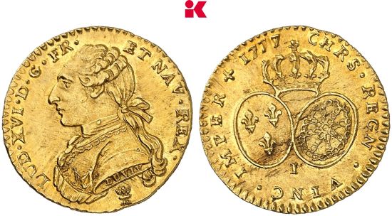 This type was struck in tiny numbers 1775-84 and was melted when the gold louis was reduced to 7.65 g in 1786. The known dates for the type are 1775-A, 1776-L, 1777-I and 1784-A, with perhaps a dozen examples known between them.