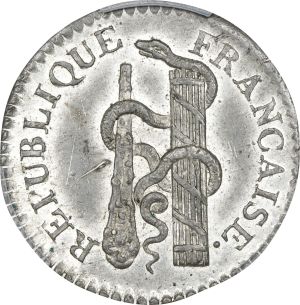 This is from a series of patterns made as the republican regime wrangled over what the new decimal coinage should look like. Eventually, in 1795, the Directory issued one and five centimes and one decime in copper, never a 10 centimes.