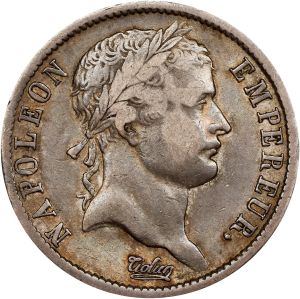 This specimen was lot 43388 in Stack's Bowers ANA sale (Oklahoma City, OK, August 2025), where it sold for $1,200. The catalog description[1] noted, "FRANCE. Empire. 2 Francs, 1809-H. La Rochelle Mint. Napoleon I. PCGS VF-30. Standing as the only example of the type in the PCGS census, this evenly circulated specimen features a deep gunmetal gray tone and a slightly mottled nature upon the reverse. From the Richard Margolis Collection (acquired from CGB in 2009 for $2,723). Ex: CGB 40 (9/2009) Lot # 462." This type was struck 1809-14 during the reign of Napoleon I from numerous mints. Many issues of this type are known from a handful (<10) of examples. There are two known per Le Franc, probably including this one.