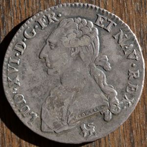 - Obverse: uniformed and peruked bust of Louis XVI facing left, legend LUD XVI D. G. FR. ET NAV. REX. (Louis XVI, by the grace of God, king of France and Navarre).