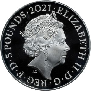 This specimen was lot 44703 in Stack's Bowers ANA sale (Oklahoma City, OK, August 2025), where it sold for $660. The catalog description[1] noted, "GREAT BRITAIN. Silver "Gothic Crown" 5 Pounds, 2021. Llantrisant Mint. Elizabeth II. PCGS PROOF-70 Deep Cameo." This NCLT was accompanied by KM-2037, which featured the reverse design of the Victorian coin.