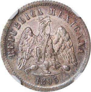 This specimen was lot 71359 in Stack's Bowers Collectors Choice sale (Costa Mesa, CA, October 2025), where it sold for $408. The catalog description[1] noted, "MEXICO. 10 Centavos, 1893-Ho G. Hermosillo Mint. NGC MS-63. Finest and only Mint State of just to graded by NGC. Attractive multi-color toning. From the Kirk Menczer Collection of Republican Decimal Minors." This specimen is the last date of a series struck 1874-93 at the Hermosillo mint. Assayer G served from 1886 until the mint's closure in 1893.