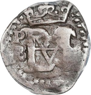 This specimen was lot 73414 in Stack's Bowers Collectors Choice sale (Costa Mesa, CA, October 2025), where it sold for $125. The catalog description[1] noted, "BOLIVIA. Cob 1/2 Real, ND (1596-1603)-P B. Potosi Mint. Philip III. PCGS FINE-15. From the Richard August Collection." The mountains around Potosi contained enormous amounts of high grade silver ore, a situation the Spanish were not slow to exploit. A mint was set up in the 1570's to process the silver mined there. The early products of the reign of Philip II are fairly good quality but rot set in during the following reign, including fraudulent debasement. The Potosí mint was the second mint in the western hemisphere to date its products. Dating began in 1617.